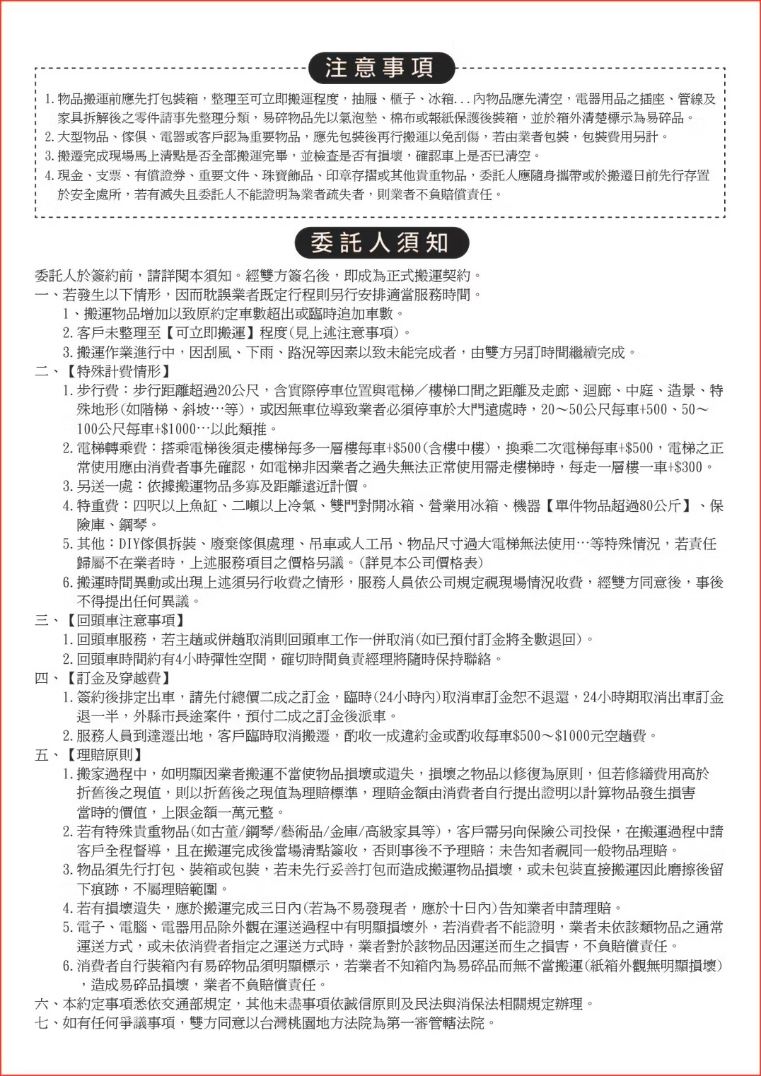 簽訂正式搬運合約,明確雙方權利義務,保障您的權益。若有未履行合約之情事,我們將依合約內容負責賠償,讓您安心託付。